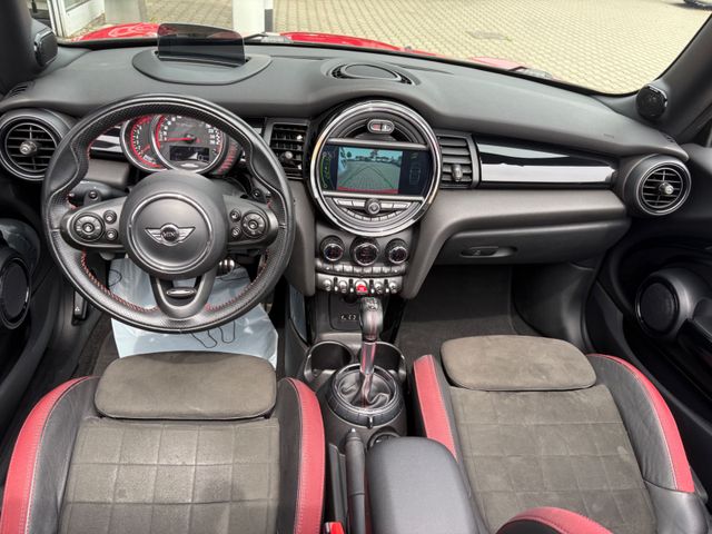 3. Bremsleuchte, Airbag Beifahrerseite abschaltbar, Airbag Fahrer-/Beifahrerseite, Aktives Überrollschutzsystem (Überrollbügel), Ausstattungs-Paket: John Cooper Works Aerodynamik Kit, Autom. Begleitfunktion der Beleuchtung (Follow me home), AUX-IN-Anschluss (AUX-IN), Außenspiegel elektr. verstellbar, Außentemperaturanzeige, Bremsassistent, Bremsenergierückgewinnung, Drehzahlmesser, Dynamische Bremsleuchte, Dynamische Tractions Control (DTC), Elektron. Bremskraftverteiler, Erste Hilfe-Kasten / Verbandkasten, Exterieurumfänge Sidescuttles mit integrierten Blinkern, Fahrassistenz-System: Performance Control, Getränkehalter vorn und hinten, Griffleiste Heckklappe, Schwarz hochglänzend, Heckscheibe heizbar, Isofix-Aufnahmen für Kindersitz, Karosserie: 2-türig, Kopf-Airbag-System hinten, Kopf-Airbag-System vorn, Kopfstützen, Lendenwirbelstütze Sitz vorn links und rechts, Lenksäule (Lenkrad) mechan. verstellbar, Leuchtweitenregelung, MINI Driving Modes, Motor 2,0 Ltr. - 170 kW 16V, Multifunktion für Lenkrad, Nebelschlussleuchte, Nichtraucher-Paket, Personalisierungssystem (Personal Profile), Rücksitzlehne geteilt/klappbar, Schadstoffarm nach Abgasnorm Euro 6, Schalt-/Wählhebelgriff Leder, Schaltpunktanzeige, Scheibenwaschdüsen und Außenspiegel beheizt, Seitenairbag vorn, Service-System: Intelligenter Notruf inkl. TeleServices, Sitz vorn links mechanisch höhenverstellbar, Sitz vorn rechts höhenverstellbar, Sitzausstattung: 4-Sitzer, Sitze vorn mechanisch verstellbar, Sonnenblenden mit Spiegel, Sport-Auspuffanlage, Sportliche Fahrwerksabstimmung, Sportsitze vorn John Cooper Works, Start-Stop-Knopf, Start/Stop-Anlage (Funktion), Türgriffe innen verchromt, USB-Schnittstelle, Verdeck schwarz, Verdeckbetätigung vollautomatisch, Warndreieck, Wärmeschutzverglasung getönt, Zentralinstrument mit LED-Ring, Überrollbügel