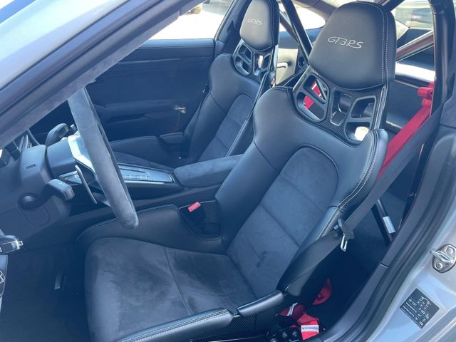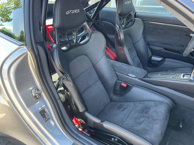 Airbag Fahrer-/Beifahrerseite, Antischlupfregelung (ASR), Antriebsart: Heckantrieb, Automatisches Bremsen Differential (ABD), Außenspiegel asphärisch, links, Außenspiegel elektr. verstell- und heizbar, beide, Bordcomputer, Bremssättel Rot lackiert, Einschaltautomatik für Fahrlicht, Getränkehalter, GT3 RS, Heckleuchten LED, Heckscheibe heizbar, Heckspoiler, Karosserie: 2-türig, Kopf-Airbag-System Porsche Side Impact Protection System (POSIP), Kopf-Schulter-Airbag vorn (Thoraxbag), Lenkrad (Alcantara 3-Speichen) mit Schaltfunktion, Lenksäule (Lenkrad) verstellbar, LM-Felgen, Make-up-Spiegel im Fond beleuchtet, Motor 4,0 Ltr. - 368 kW KAT, Motor-Schleppmoment-Regulator (MSR), Parkbremse elektrisch, Porsche Active Suspension Management (PASM), Porsche Torque Vectoring Plus (PTV Plus), Reifen-Reparaturkit, Reifendruck-Kontrollsystem, Schadstoffarm nach Abgasnorm Euro 6, Seitenairbag vorn, Sitzbezug / Polsterung: Alcantara / Kunstleder, Universal-Schnittstelle Audio, Verglasung getönt