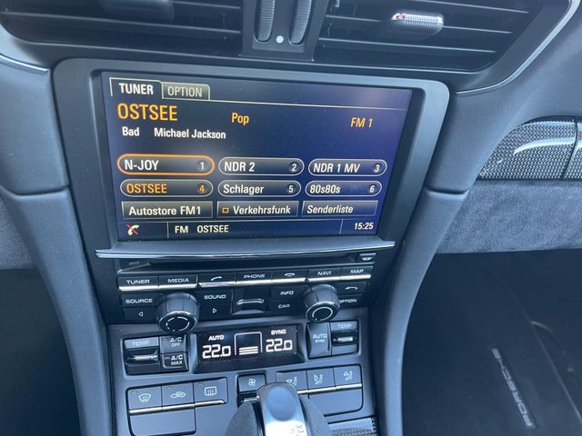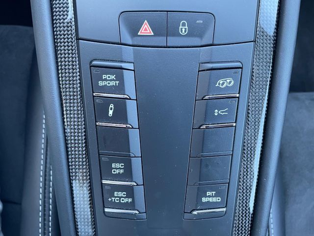 Außen-/Innenspiegel mit Abblendautomatik und Regensensor, Außenspiegel Unterschale lackiert (Sport Design), Blende Gurtaustritt B-Säule Alcantara, Einstiegsblenden (Carbon) beleuchtet, mit Schriftzug Individual, Frontscheibe mit Bandfilter oben, Fußmatten, Hauptscheinwerfer LED, schwarz, inkl. Porsche Dynamic Light System Plus (PDLS+), Innenraumlicht-Paket / Licht-Design-Paket, Interieur-Zusatzpaket: Türtafel Leder/Alcantara, Keramik-Bremsanlage (Porsche Ceramic Composite Brake, PCCB), Kraftstofftank: 90 Ltr., Liftsystem Vorderachse, Metallic-Lackierung, Mittelkonsole, Blende vorn Carbon, Mittelkonsole, Deckel Ablagefach hinten Alcantara mit Porschewappen, Multimedia Smartphone Applications (Onlinedienste / Apps), Porsche Communications Management (PCM) inkl. DVD - Navigationsmodul (erweitert), Radioempfang digital (DAB+), Raucher-Paket, Sicherheitsgurte schwarz, Sonnenblenden Alcantara, Sound-Package Plus, Sport-Chrono-Paket, Sport-Chrono-Paket (erweiterter Umfang), Vorrüstung Vehicle-Tracking-System
