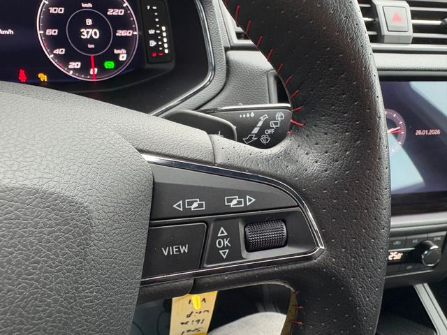 3. Bremsleuchte, Airbag Beifahrerseite abschaltbar, Airbag Fahrer-/Beifahrerseite, Ambiente-Beleuchtung LED, Antriebs-Schlupfregelung (ASR), Armaturentafel Leder-Optik, Außenspiegel schwarz, Außentemperaturanzeige, Bordcomputer, Bremsassistent, Dachhimmel schwarz, Einschaltautomatik für Fahrlicht, Elektr. Bremskraftverteilung, Elektron. Differentialsperre (EDS), Fahrassistenz-System: Berganfahr-Assistent (Hill-Holder), Fahrassistenz-System: Fahrprofilauswahl (SEAT Drive Profile), Fahrassistenz-System: Multikollisionsbremse (Multi Collision Brake), Fahrassistenz-System: Umfeldbeobachtungssystem (Front assist) mit City-Notbremsfunktion, Gepäckraumabdeckung / Rollo, Heckleuchten LED, Heckscheibe heizbar, Heckscheibenwischer, Innenausstattung: Chrom-Applikationen, Innenraumfilter: Pollenfilter, Isofix-Aufnahmen für Kindersitz, Karosserie: 5-türig, Klima-Komfort-Paket, Kofferraumbeleuchtung, Kopf-Airbag-System, Kopfstützen hinten, Kopfstützen vorn, Lenksäule (Lenkrad) höhenverstellbar, Licht- und Sicht-Paket, LM-Felgen, Motor 1,0 Ltr. - 81 kW TSI, Otto-Partikelfilter (OPF), Radioempfang digital (DAB+), Reifenkontroll-Anzeige, Rücksitzlehne geteilt/klappbar (1/3-2/3), Schadstoffarm nach Abgasnorm Euro 6d, Schalt-/Wählhebelgriff Leder, Seitenairbag, Sitze vorn höhenverstellbar, Sport-Fahrwerk FR / Cupra, Sportsitze vorn, Start/Stop-Anlage, Steckdose (12V-Anschluß) vorn, Stoßfänger FR-Design, Warnanlage für Sicherheitsgurt-System, Wärmeschutzverglasung