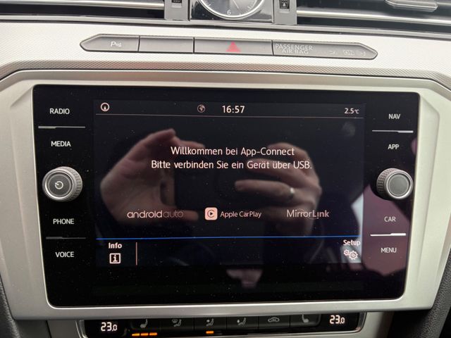 Sonderausstattung:Active Info-Display (Instrumentenanzeige digital), Audiosystem Composition Media (Touchscreen, Radio/CD-Player, MP3, Bluetooth), Fahrassistenz-System: Autom. Distanzregelung (ACC) mit Umfeldbeobachtungssystem (Front assist, bis 210 km/h), Klimaanlage Climatronic 3-Zonen, Metallic-Lackierung, Mobiltelefon Schnittstelle Comfort (inkl. Bluetooth-/Audio-Schnittstelle), Navigationsmodul Discover Media (für Audiosystem), Rückfahrkamera (Rear View), Scheinwerfer LED, Volkswagen Media Control und App-Connect / MirrorLink